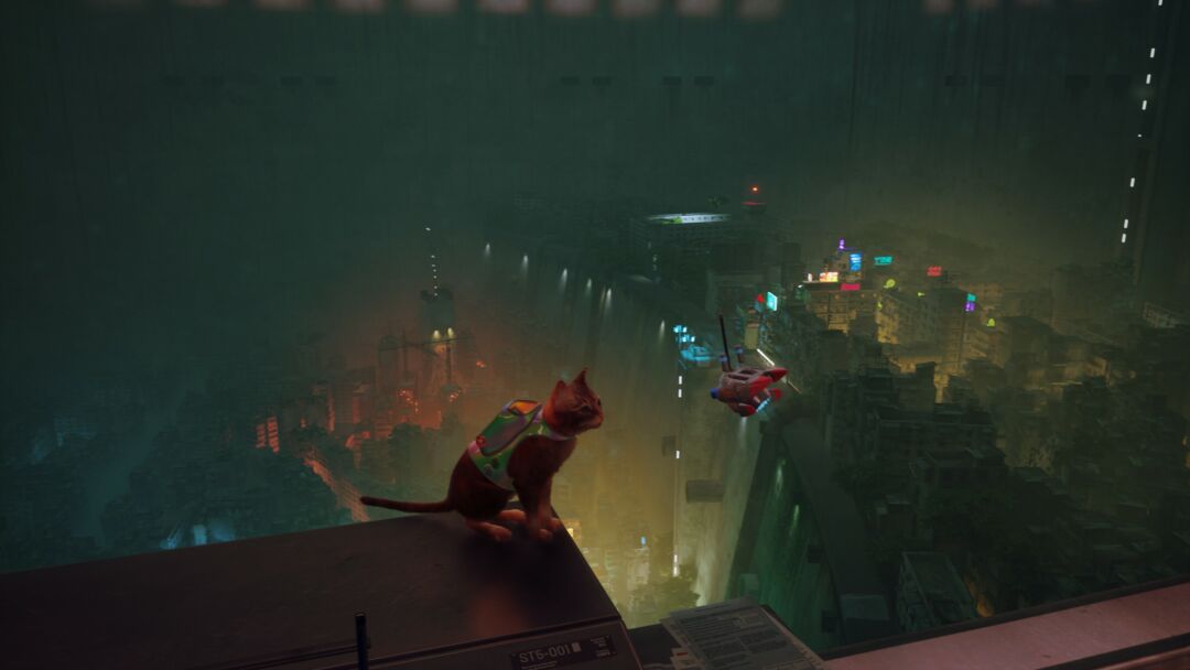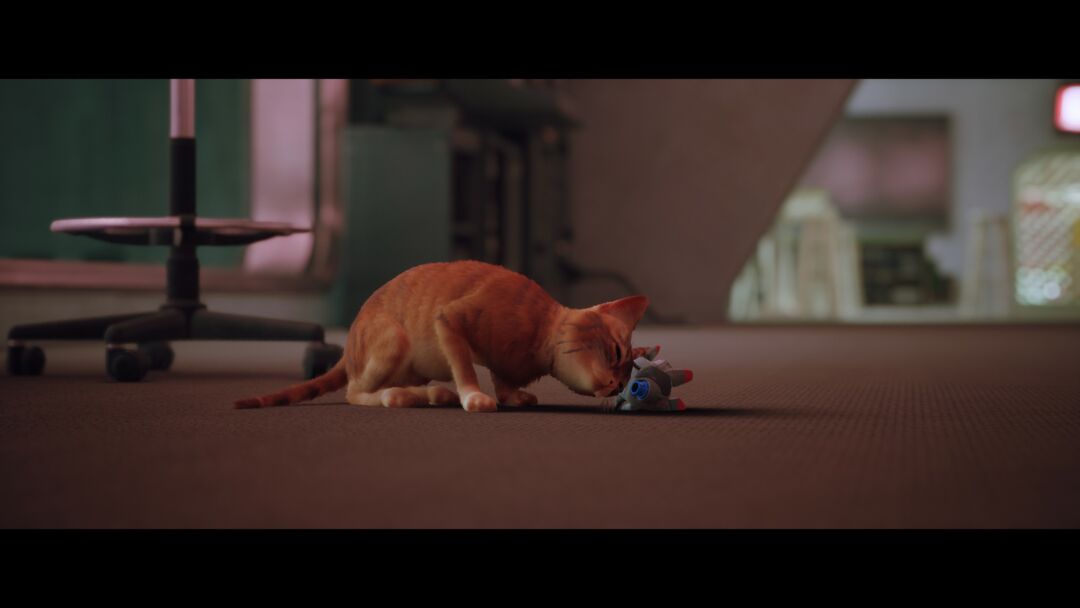 Now let’s talk immersion: Stray nails it like few other games have. Maybe it’s because the “cat game” genre isn’t exactly overflowing, but more likely it’s the insane attention to the nuances of feline life. Our feline gaze is fixed on the action, our ears perk up at the slightest whisper, and we inflate like a blowfish when we’re shaken. A strange shadow over our head? We’re out, backwards. And when it’s time to show off? We’re all about acrobatic finesse, jumping into crates, screaming on cue (gotta keep those bad guys on their toes), and parkouring through the urban jungle with a fluidity that makes us purr with delight. It’s crystal clear that the developers behind this gem have a soft spot for our feline friends and have poured every ounce of their cat-centric expertise into the gameplay. And I’m not kidding – just take a look at the end credits. The tally? A few “production babies”, but the real MVPs? A whopping 23 cats, with a modest pack of 4 dogs trailing behind. As a certified cat lover, I’m all about that ratio.
